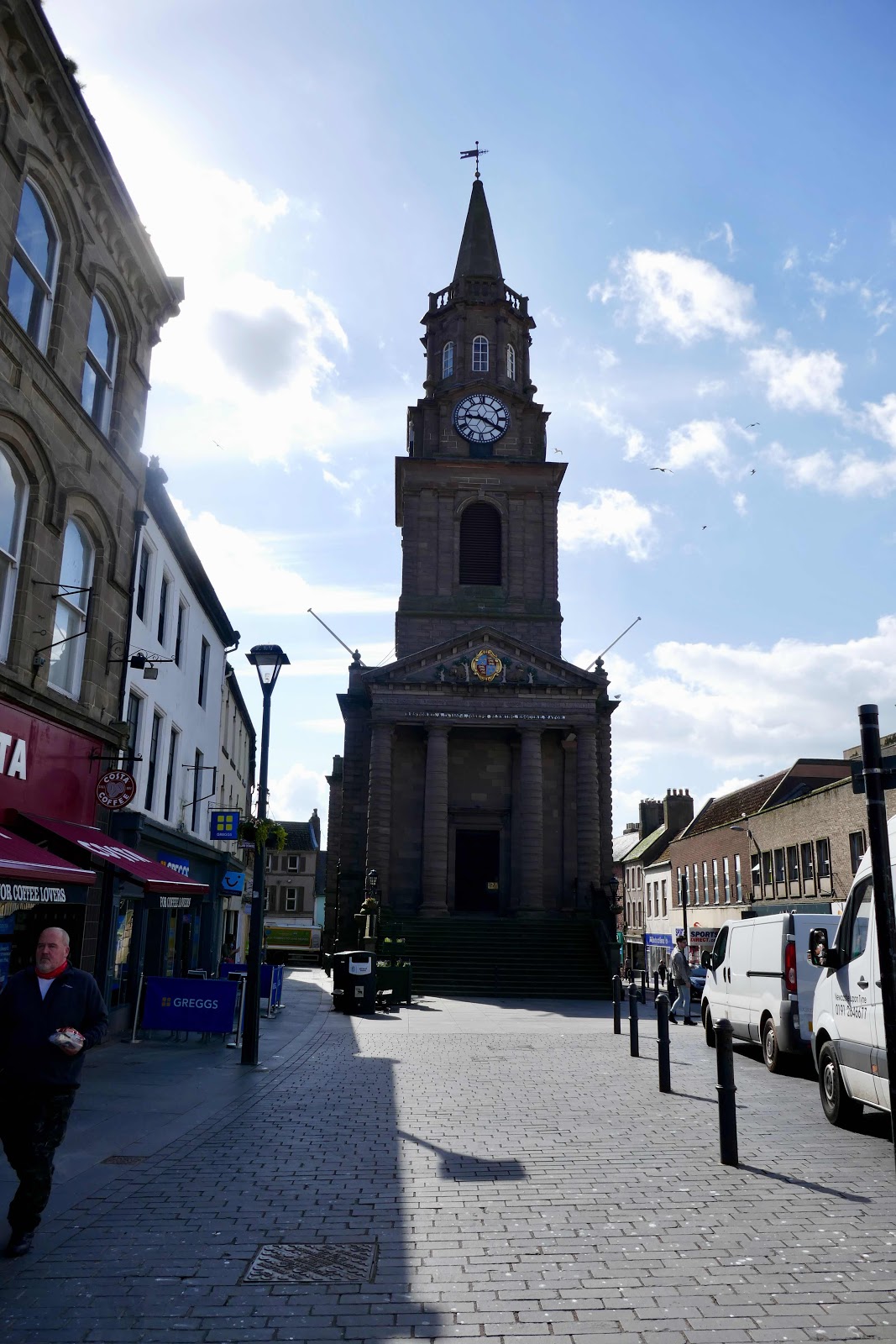 Today we spent sometime exploring parts of Berwick Upon Tweed which is the northernmost town in England and is at the mouth of the River Tweed. (Although Gary and Anita’s house is in Scotland!) The towns’s name means barley and during the 12th Century it was the wealthiest town in Scotland. For many years the town has been central to historic border wars between England and Scotland but it has been with England since 1482. There are many notable buildings in town in particular the Georgian Town Hall, which had a prison on the top floor.