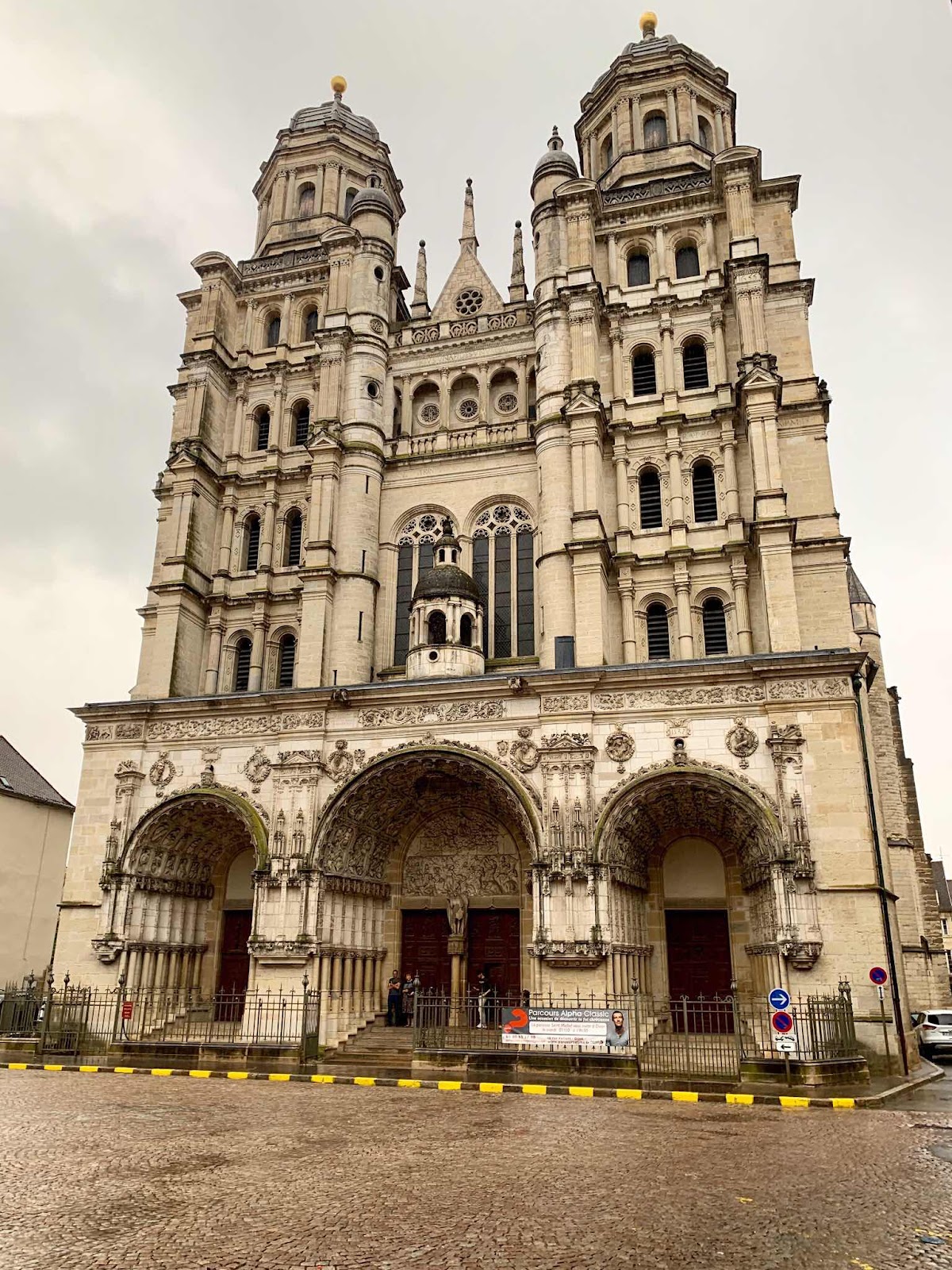 Today’s promised rain finally came but we continued on sharing the one umbrella. We had a look at the Notre-Dame church.
