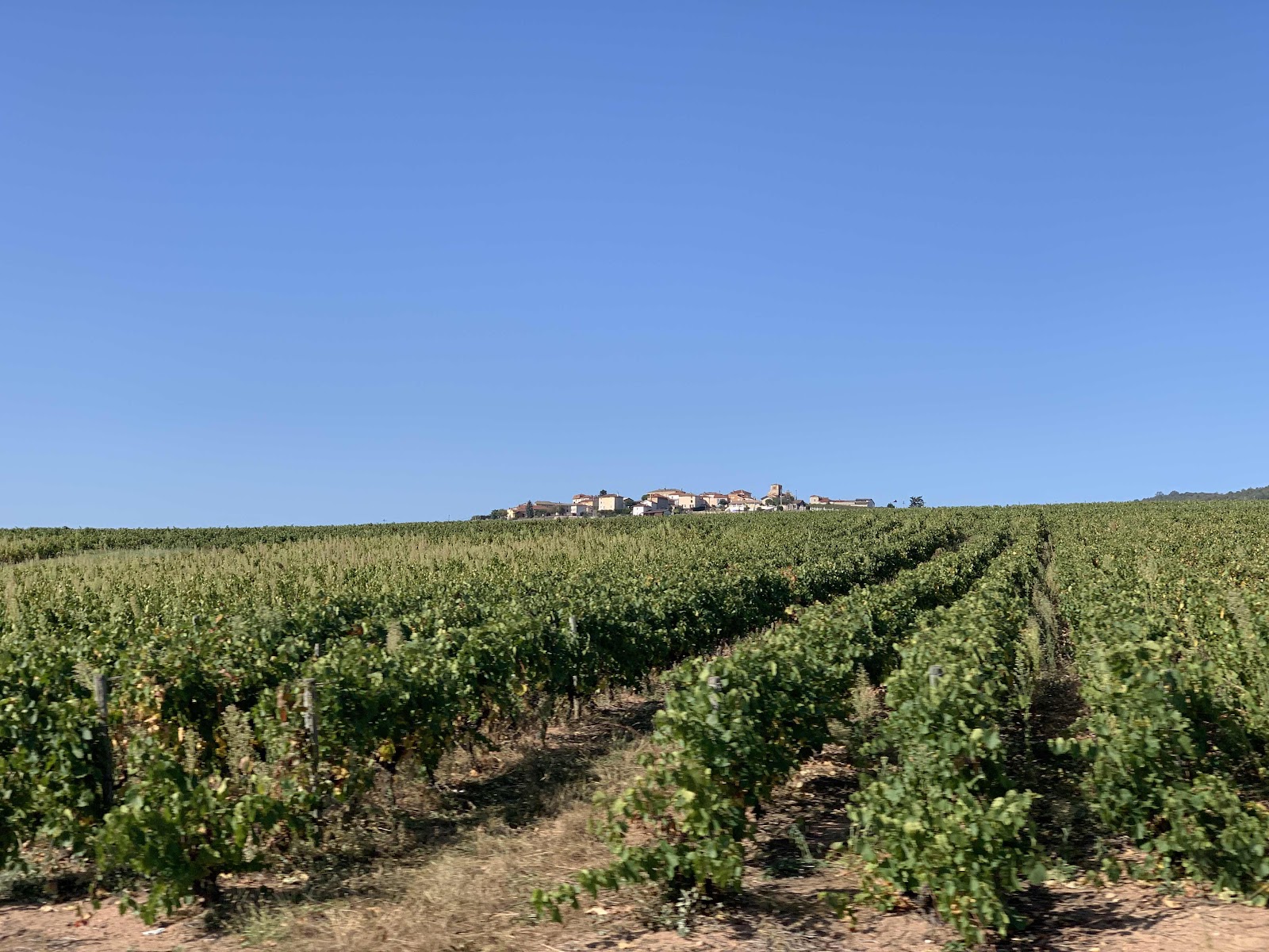 As we decended over the other side we were greeted with the wine area known as the Beaujolais, with vineyards on every conceivable hill side. There were many groups of people busy picking the grapes as it’s that time of year to make more wine!