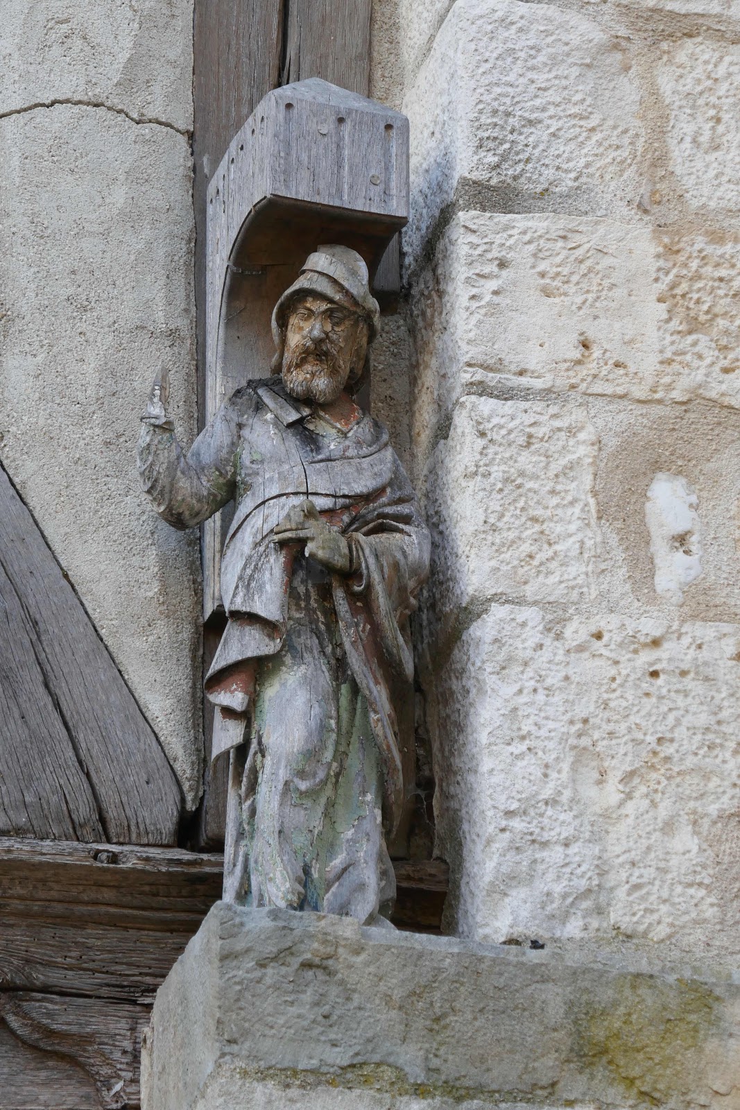 We then drove another hour or so to the medieval village of Noyers, set in the Chablis countryside on the banks of the River Serein. We entered the village through one of the fortified towered gateways and strolled along the cobbled streets admiring the many half timbered buildings with some unique features.